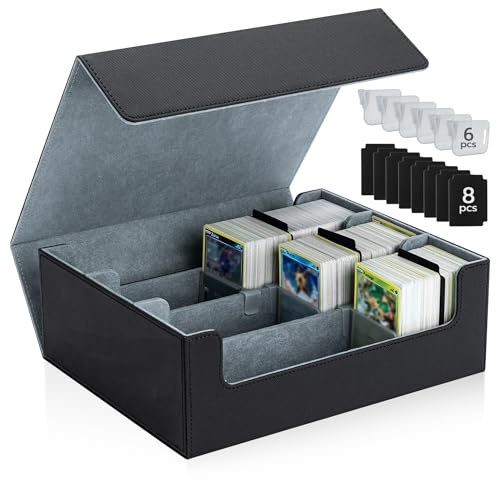 Heypappy Trading Card Storage Box 2400+ Capacity, Includes 3 PP Cases & Handle, 24 Colorful Dividers & 6 Card Supporters, Durable PU Leather Card Box for Most Standard-sized Trading Cards