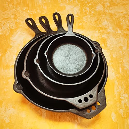 4-Piece Cast Iron Skillet Set - Pre-Seasoned Grill & Frying Pans for Steak, Eggs, and Cooking - Compatible with All Stoves (14cm, 16cm, 20cm, 24cm)