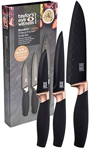 Taylors Eye Witness Brooklyn Brass 5 Piece Kitchen Knife Set Soft Grip with Sharpener