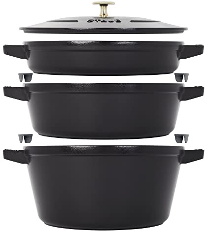 STAUB Cast Iron Roaster/Cocotte, Round, 24 cm, 3.8 L, Black