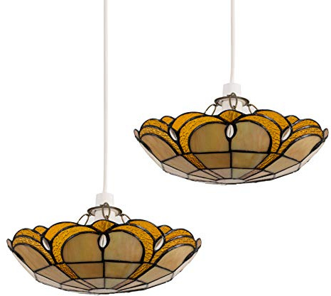 MiniSun | Tiffany Style White and Red Stained Glass Pendant Light Shade | Pendant Lights, Home Décor & Improvement Essential | 240mm Shade Width